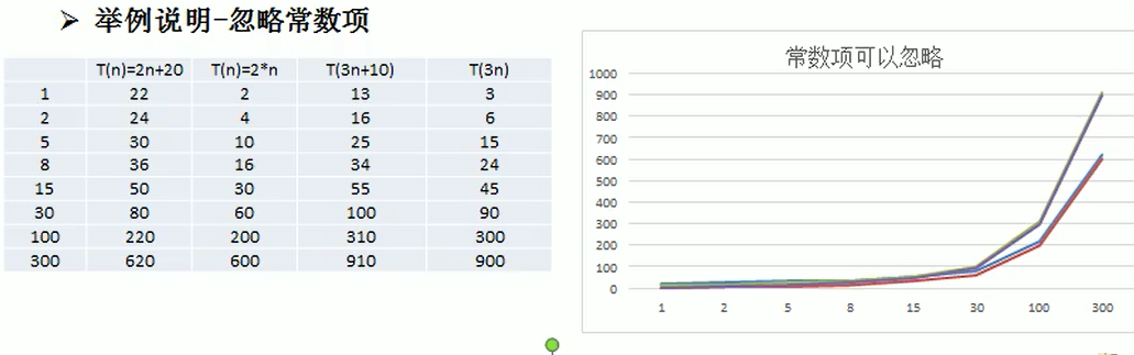 又根據時間頻度T(n)的“三個忽略”原則,我們可以知道時間複雜度是這樣得到的: