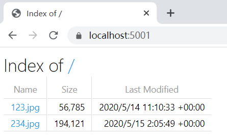 通過URL:https://localhost:5001/MyStaticFiles/訪問時,由於目錄下不存在默認文件,所以會打開文件目錄。