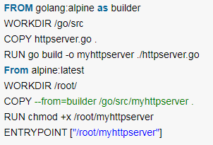 使用多階段構建,修改后的dockerfile如下圖所示,修改實現將第一階段拷貝並解壓好的文件複製過來即可,少了拷貝tar包的環節,這樣使得最終形成的鏡像中鏡像層數得到有效的降低,也一定程度上降低了鏡像尺寸。