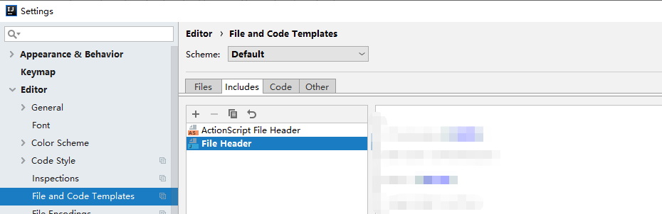 選擇其中的inclues選項卡,並選擇File header,如圖。不要選擇Files選項卡再設置Class,這樣比較麻煩,而且這樣設置以後沒新建一個類都要自己寫一次Date。