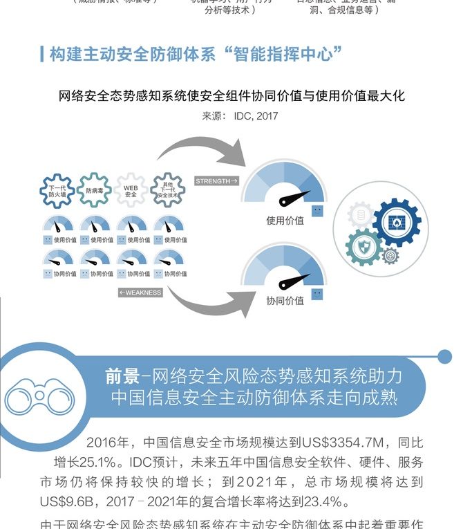 【IT168 技術】IDC與新華三聯合發布的《網絡安全風險態勢感知系統》白皮書研究表明,利用大數據分析及認知系統等相關技術,構建網絡安全風險態勢感知系統,並將主動安全防禦體系中各個組件有機結合在一起,才能使構建智能的主動安全防禦體系得以實現。