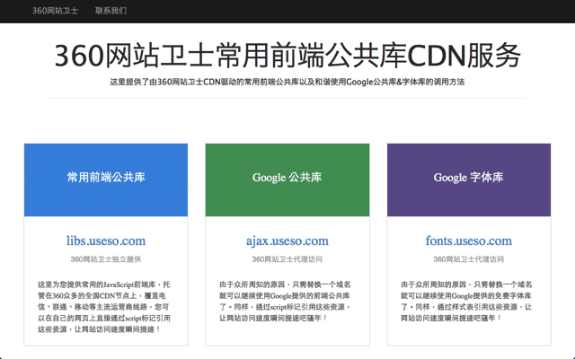 網站名稱:360 網站衛士前端公共庫 CDN 服務
