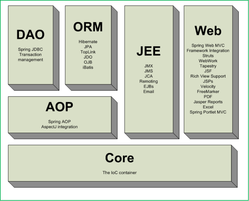 Spring MVC全名叫Spring Web MVC,它是Spring家族Web模塊的一個重要成員。這一點,我們可以從Spring的整體結構中看的出來: