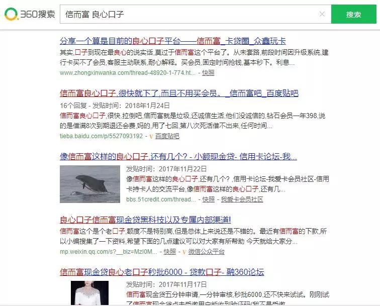 2018年以前,信而富一度被稱為“良心口子”。至今在搜索引擎上仍然可以看到一眾借款人或者是擼貸者將信而富稱為“良心口子”、“良心平台”的描述。