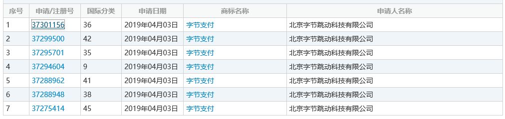 近日,今日頭條母公司北京字節跳動科技有限公司申請了“字節支付”商標註冊,主要在申請號為37301156中,申請了保險經紀、金融管理、藝術品估價、不動產管理、海關金融經紀服務、擔保、募集慈善基金、信託、典當、金融信息相關金融服務。