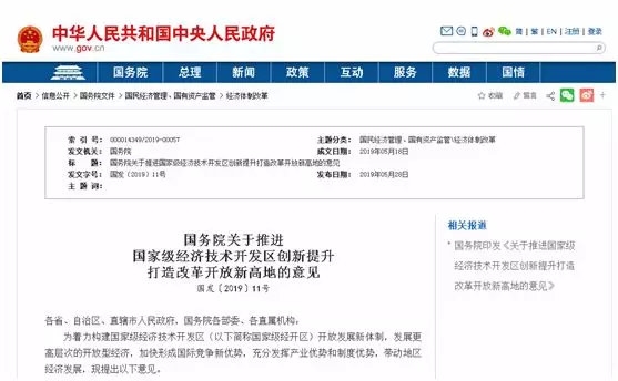 在部署推進國家級經濟技術開發區創新提升的會議結束后,不到一個月,相關支持政策文件就正式落地。