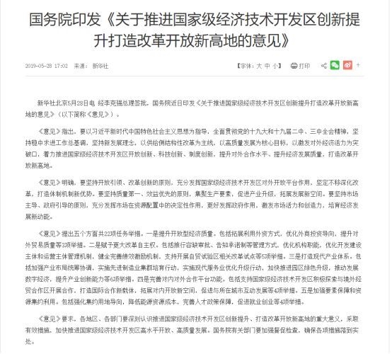 5月29日,國務院印發《關於推進國家級經濟技術開發區創新提升打造改革開放新高地的意見》。
