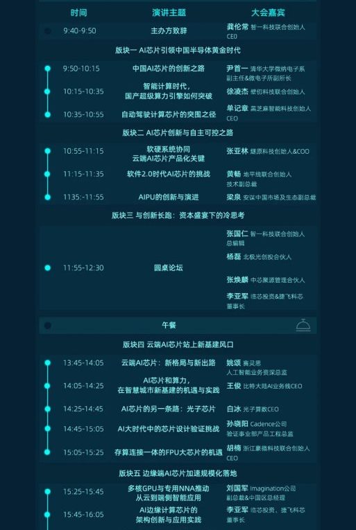 本次GTIC 2020 AI芯片創新峰會將分為上午場和下午場,共五個版塊進行。