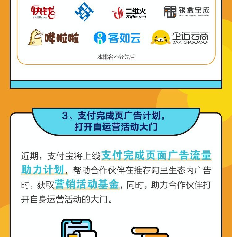 支付寶將上線支付完成頁面廣告流量助力計劃,助力服務商合作夥伴通過廣告推廣,獲取支付寶營銷活動基金,助力自身運營活動開展。