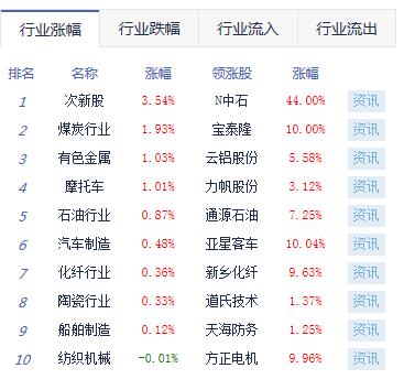 板塊方面,煤炭採選、汽車行業、有色金屬漲幅居前;保險、安防設備、民航機場、釀酒行業跌幅居前。