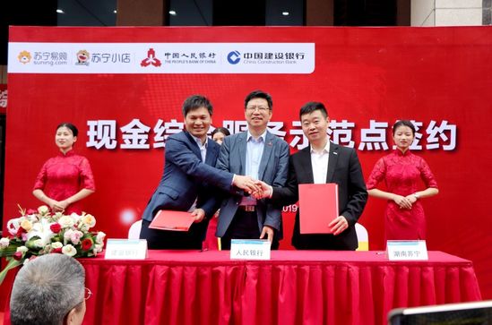 (從左至右:建設銀行、人民銀行、湖南蘇寧三方負責人)