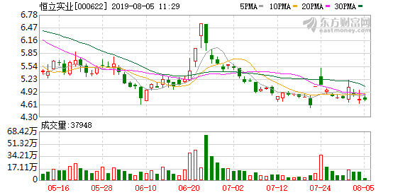 7月23日,恆立實業實控人變更的公告披露后,公司股價迎來開盤漲停。當日收盤價5.04元。7月24日,恆立實業持續維持漲勢,漲幅最高觸及7%。