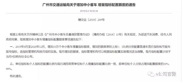 本次廣深大幅增加了小汽車增量指標的配置額度,應是落實國家和省有關完善促進消費體制機制政策的重要舉措。今年1月,國家發展改革委、交通運輸部等10部委聯合發布《進一步優化供給推動消費平穩增長促進形成強大國內市場的實施方案(2019年)》,提出“優化機動車限購管理措施”以促進汽車消費。