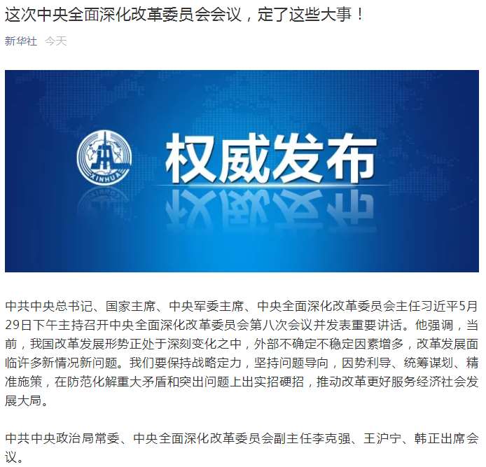這次中央全面深化改革委員會會議定了這些大事!