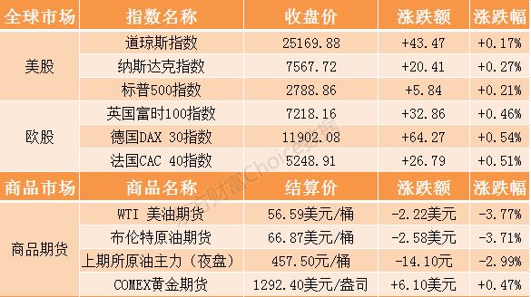 隔夜外盤:歐美股市全線收漲 國際油價跌近4%創兩個月收盤新低