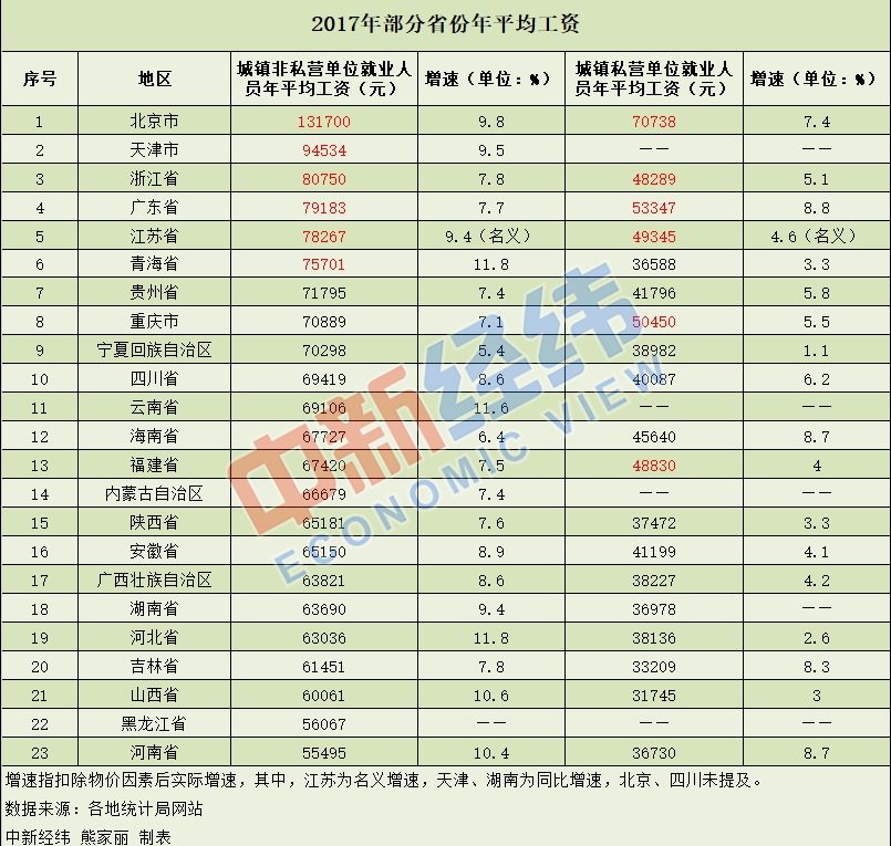 中新經緯客戶端(微信公眾號:jwview)梳理各地統計局數據發現,截至8月25日,全國至少有23個省份已公布2017年城鎮非私營單位、私營單位就業人員年平均工資水平。