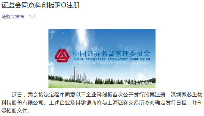摘要 【證監會同意微芯生物科創板IPO註