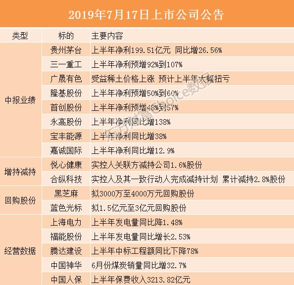 Continue reading摘要 7月17日晚間,滬深兩市多家上市公